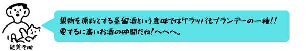 この度数はストレートで飲むのに適しており、グラッパ本来の複雑な香りや味わいを堪能できるラインのようだ。さすがサイゼと言うほかない!