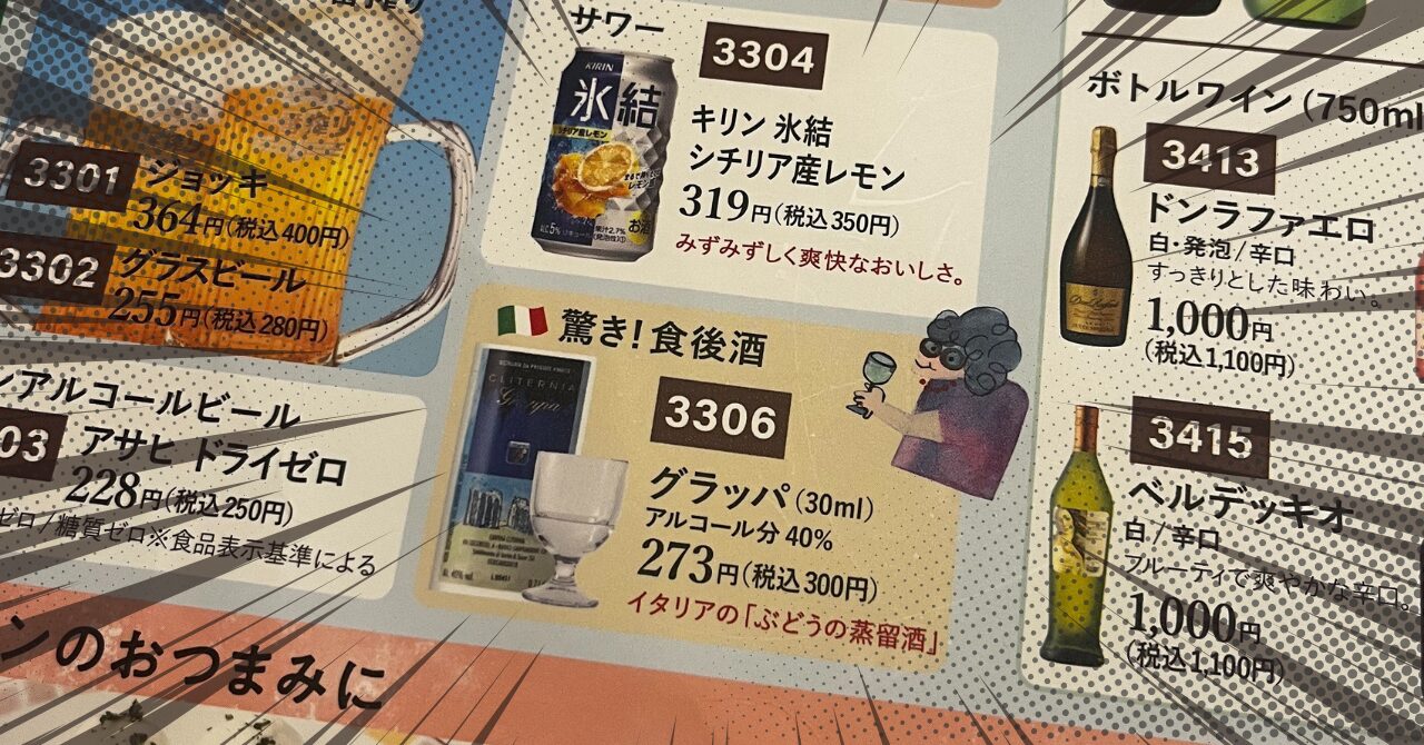 一般的なバーや高級イタリアンレストランでグラッパを頼むと、一杯(1ショット)で1000円以上することも珍しくない。しかし、サイゼでは1杯300円(税込)で販売されている現実。圧倒的コストパフォーマンスである。